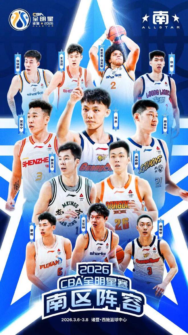 以城之名,“浙”有好戏!2026CBA全明星周末全阵容集结。3月6日至8日,相约诸暨,看群星闪耀西施故里,巅峰对决一触即发!这是段昂君第三次入选全明星周末,期待他在全明星赛场绽放光彩,为球迷带来精彩表现!