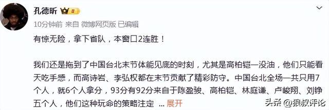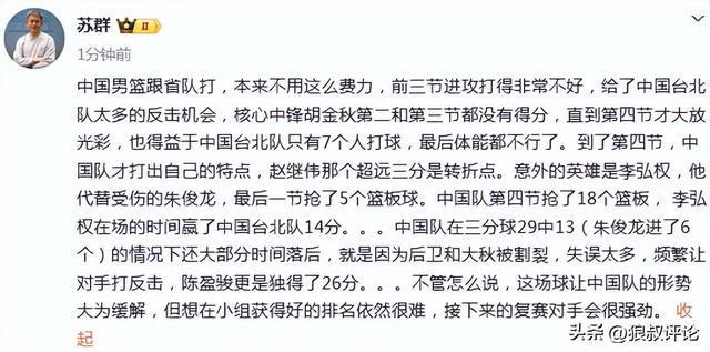 中国男篮逆转中国台北引热议!媒体人盛赞李弘权逆转英雄