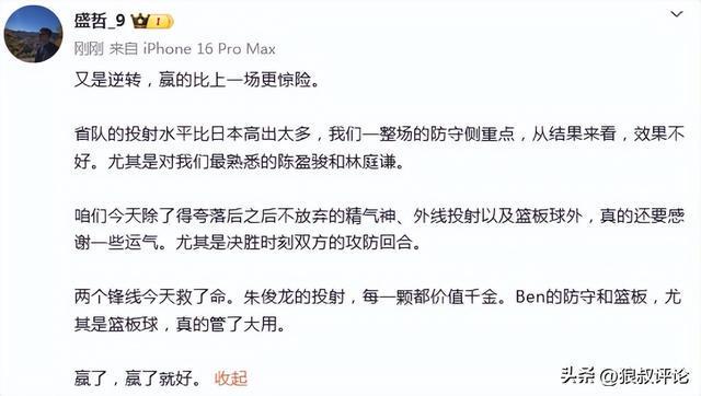 省队的投射水平比日本高出太多,我们一整场的防守侧重点,从结果来看,效果不好。尤其是对我们最熟悉的陈盈骏和林庭谦。